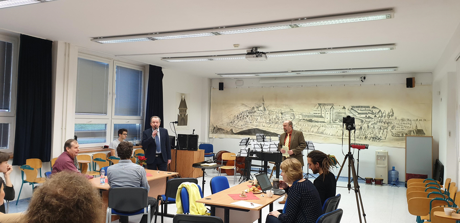 V úvodu přivítal lektory ředitel školy RNDr. Jan Chudárek a organizátor Mgr. Vlastimil Hrbáček. Zdůraznili význam takových besed a workshopů jako jiné formy vzdělávání a rozvíjení osobnosti. Předvánoční čas je pro takovou formu zastavení a zamyšlení ideální. Adventní atmosféru celého setkání umocnilo i vystoupení školní cimbálové muziky pod vedením manželů Kovaříkových.