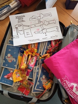 Při tomto „Honu za pokladem“ se týmy pohybovaly v areálu školy dle kódů v tajném plánku. Na každém z nalezených stanovišť hledali účastníci správnou odpověď na otázky týkající se Evropské unie, evropských zemí a jejich jazyků. Správná odpověď zajistila vždy jedno číslo do hledaného šestimístného kódu. Ten sloužil k otevření pokladu. Cílem hry bylo správně odpověď na kvízové otázky a získat tak některý z dárků pokladu, což se nakonec zdárně povedlo všem zúčastněným týmům. Gratulujeme!