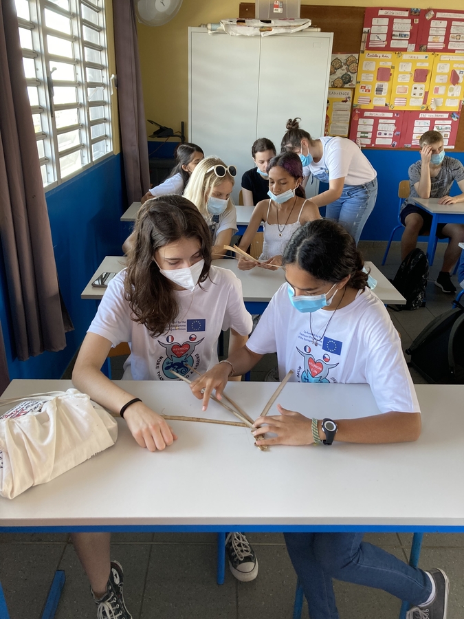 Partnerská škola Collège Emilien Adam de Villiers v městě Saint-Pierre na jihu ostrova si pro žáky připravila bohatý program. Studenti se aktivně zapojili do výuky, prozkoumali krásy ostrova a neuvěřitelnou přírodní diversitu včetně mnoha endemických druhů fauny i flóry, vydali se k vrcholu nejčinnější sopky na zemi Piton de la Fournaise, zakusili všemožné chutě exotické kuchyně a relaxovali na zdejších plážích. V rámci dvoudenního treku do kaldery Mafate či při návštěvě záchranářské stanice želv v Kelonii realizovali projektové aktivity zaměřené na environmentální výchovu a trvale udržitelný rozvoj. Bude tak nutné zasadit v areálu našeho gymnázia palmy vacoa, neboť účastníci skvěle ovládají techniku pletení z palmového šustí… A díky návštěvě Piton Mont-Vert si nasadili réunionský endemický strom Dombeya reclinata, zřejmě první svého druhu zasazený na ostrově českýma rukama…