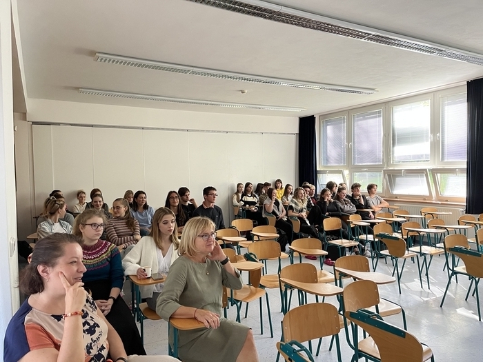 Stáž v oboru fyzika na TU Chemnitz - dva fyzikální nadšenci z našeho gymnázia prezentovali, jak proběhla jejich týdenní stáž na univerzitě, jak cenné nejen teoretické, ale především praktické zkušenosti získali, když pracovali na konkrétním fyzikální projektu na vysokoškolské úrovni.