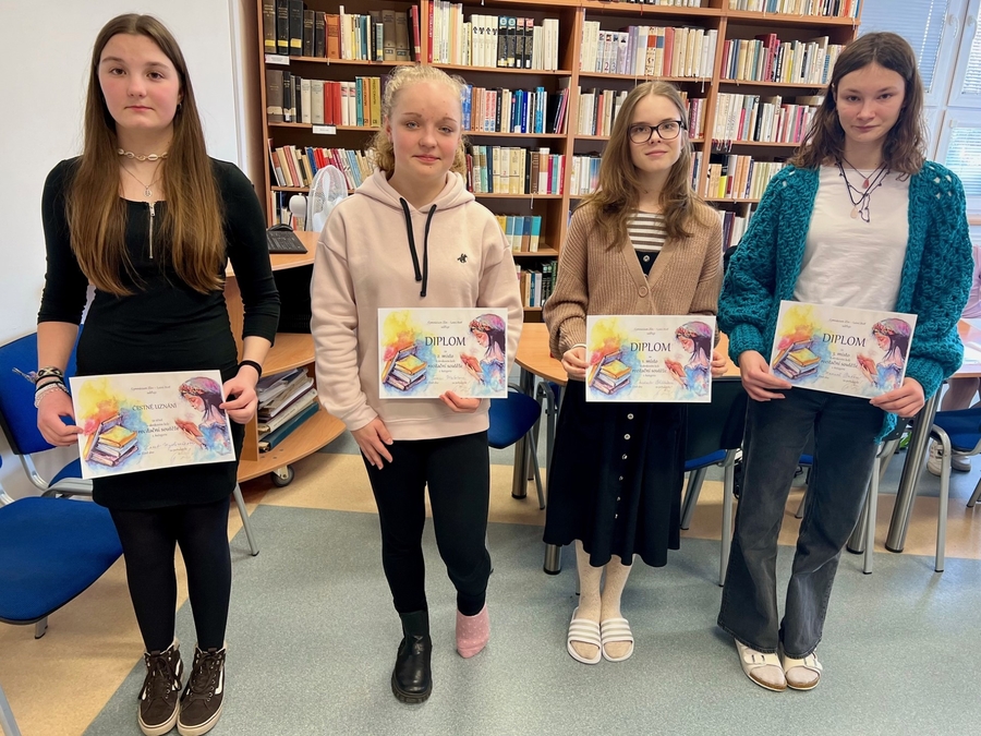 První místa obou kategorií obsadily studentky našeho gymnázia. V první kategorii na nejvyšší příčku dosáhla studentka primy B Viktorie Nešporová, ve vyšší kategorii získala prvenství Michaela Bližňákova z tercie A.