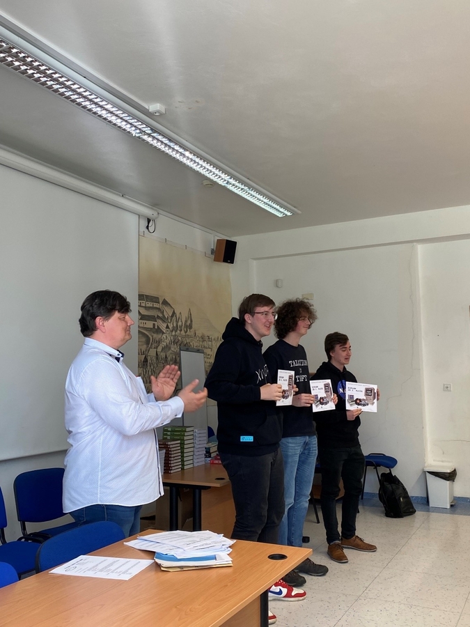 Letošní ročník se nesl v duchu evropského dění v letech 1975-2000. O výhru zabojovalo hned 10 týmů reprezentujících jednotlivá gymnázia ve Zlínském kraji. Soutěžící týmy musely předvést nejen znalosti historických souvislostí, ale také sféry soudobé kultury či sportu. Ačkoliv konkurence byla silná a odhodlání taktéž, 1. příčku a s ní i postup do celostátního kola vybojovali dějepisní nadšenci z Uherského Brodu. Náš tým ze septimy B ve složení Jan Žeravský, Robin Šilberský a David Pethö skončil na 5. místě. Všichni účastníci obdrželi věcné ceny od nakladatelství Albatros a od Zlínského kraje.