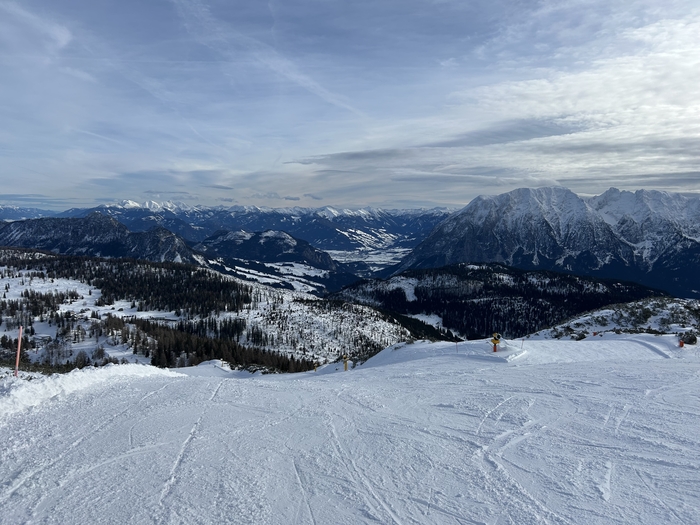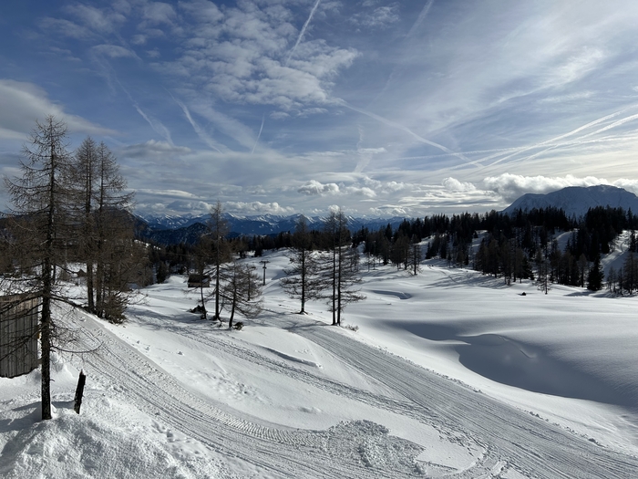 Druhá zmiňovaná skupina vyrazila v pondělí ráno ze Zlína za mrazivého počasí. Kolem 15. hodiny jsme se s nasazenými sněhovými řetězy na autobusu prodírali serpentinami do střediska Tauplitzalm. Po pěším přesunu za mírného sněžení jsme plní očekávání dorazili do nám doposud neznámého Alpenhotelu Steirerhof. Netrvalo dlouho a ubytování přímo u sjezdovky si nás získalo svou příjemnou atmosférou a obzvláště milým personálem.