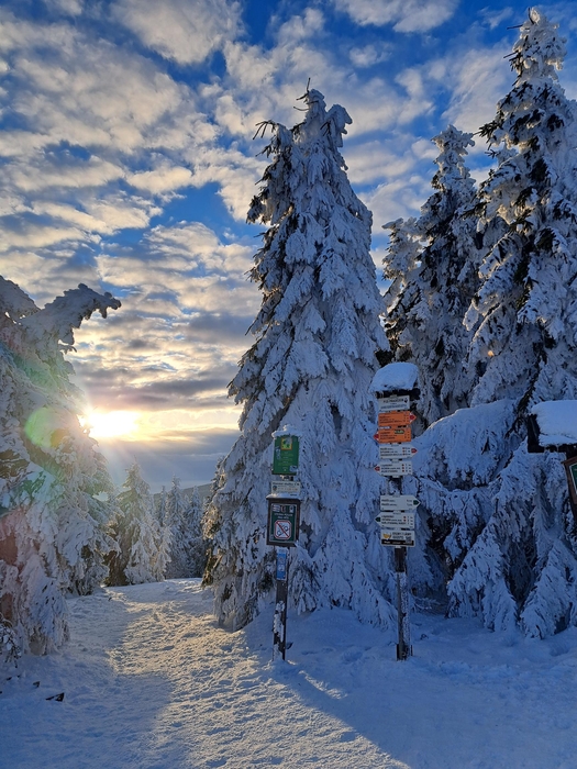 Bydleli jsme na chatě Sabinka, asi 3,5 km od Pradědu. Na tomhle místě jsem byla úplně poprvé, ale ještě před příjezdem jsem si zjistila, že přímo před chatou začíná běžkařská trasa. I když s běžkami nemám tolik zkušeností, rozhodla jsem si je vzít s sebou. Byla to skvělá volba. Využila jsem každou volnou chvíli a celkem pětkrát vyrazila na trať. Podívala jsem se na Švýcárnu, na Praděd i na chatu Barborku. Termín byl vybraný perfektně – všude spousta sněhu a příjemných −10 °C. Ideální podmínky na běžkování i zimní procházky.
